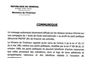 Alors qu'il est menacé de dissolution par le ministre de l'intérieur, Pastef a publié un communiqué dans lequel il évoque sa levée de fonds...