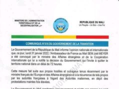 Expulsion de l’ambassadeur de France: voici le communiqué du gouvernement malien