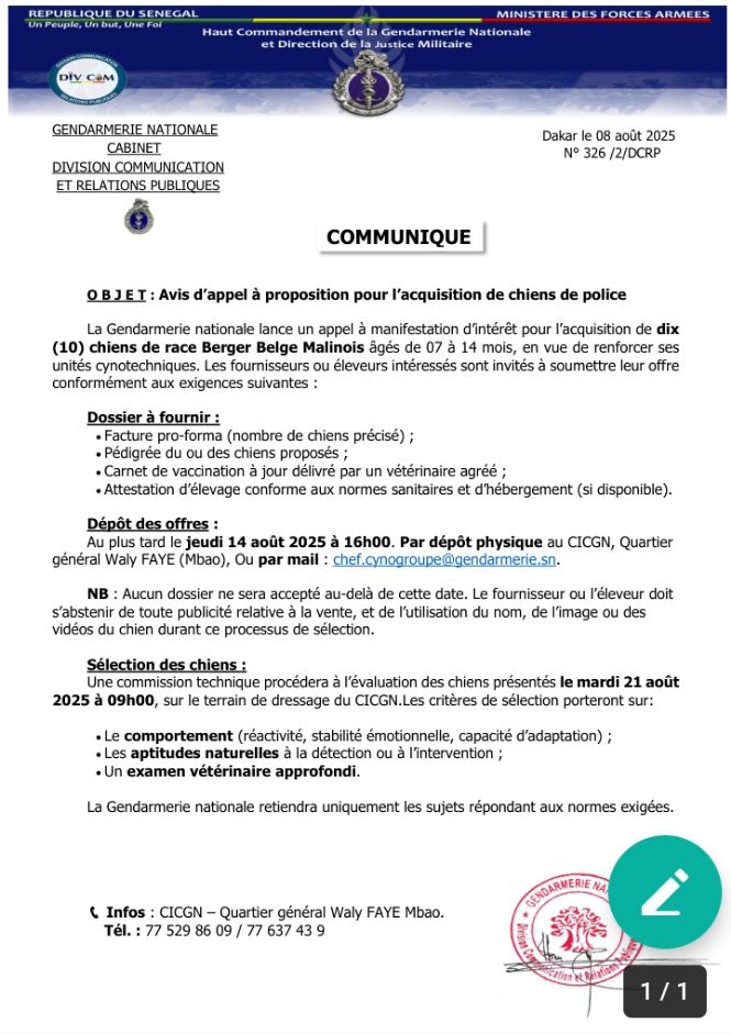 Home ACTUALITÉS La gendarmerie cherche 10 bergers belge de type malinois ACTUALITÉSCULTURESOCIETÉS La gendarmerie cherche 10 bergers belge de type malinois By contact@senefil.com - 9 août 2025 280 0 Facebook Twitter Google+ Pinterest WhatsApp
