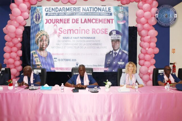 C’est au quartier Samba Diéry Diallo que la Gendarmerie nationale a tenu, ce mercredi 15 octobre, la cérémonie officielle de lancement de sa Semaine Rose, une campagne dédiée à la sensibilisation et au dépistage des cancers du sein et du col de l’utérus et qui a vu la participation du personnel féminin de l’Institution et celui d’autres forces de défense et de sécurité. Placée sous le haut patronage du Haut-commandant de la Gendarmerie nationale et Directeur de la Justice militaire et de la marraine de cette édition, Professeure Eva Marie Coll Seck, cette initiative portée par la Division du Genre, le Service de Santé de la Gendarmerie nationale ainsi que la Division de l’Action Sociale, traduit l’engagement de la Gendarmerie à placer la santé et le bien-être de son personnel au cœur de ses priorités.Dans son intervention lors de sa conférence de sensibilisation, le Docteur Yaye Coumba Diouf, gynécologue obstétricienne a insisté sur une vérité essentielle : *« Il faut prévenir les cancers du sein et du col de l’utérus par un dépistage précoce, car cela pourrait sauver des vies.»*Ainsi, la Semaine Rose de la Gendarmerie sera marquée par des séances de sensibilisation, de dépistage des cancers gynécologiques à l’instar des éditions précédentes. Pour cette année, il est également prévu un dépistage du diabète, de l’hypertension et de l’anémie. Les activités de cette campagne ont démarré le lundi 13 octobre au Service de Santé de la Gendarmerie nationale de Colobane et vont se poursuivre jusqu’au 17 octobre 2025 avec un objectif clair : effectuer un dépistage gratuit pour au moins 500 femmes.
