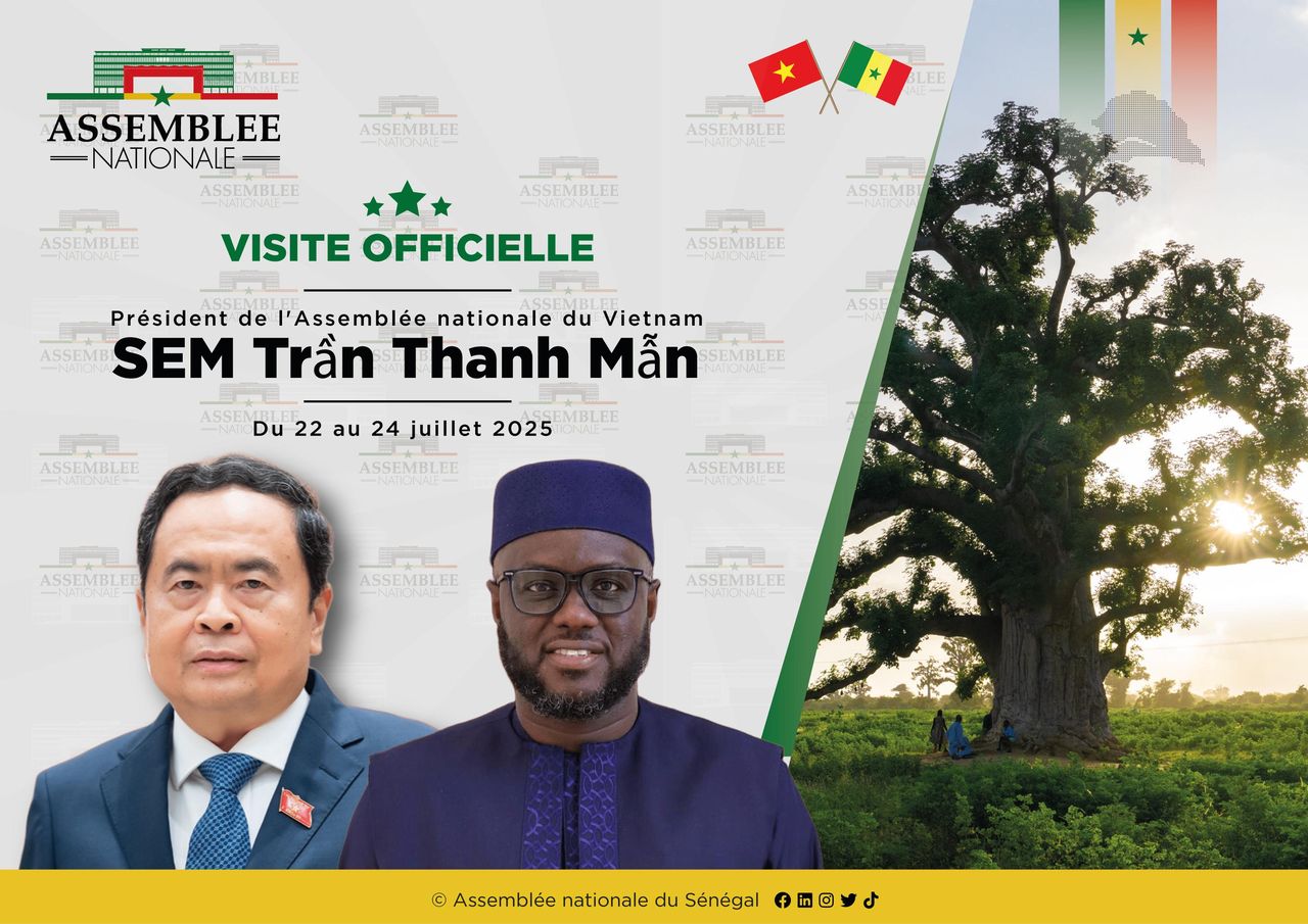 Le Sénégal accueille, du 22 au 24 juillet 2025, Son Excellence Monsieur Trân Thanh Mân, Président de l’Assemblée nationale de la République socialiste du Vietnam, pour une visite officielle de haut niveau à Dakar. Il sera reçu par son homologue sénégalais, Monsieur El Malick Ndiaye, Président de l’Assemblée nationale du Sénégal. Monsieur Trân Thanh Mân arrive à la tête d’une importante délégation de 140 membres, comprenant des ministres, parlementaires, maires ainsi que des acteurs du secteur privé vietnamien.